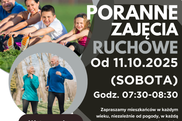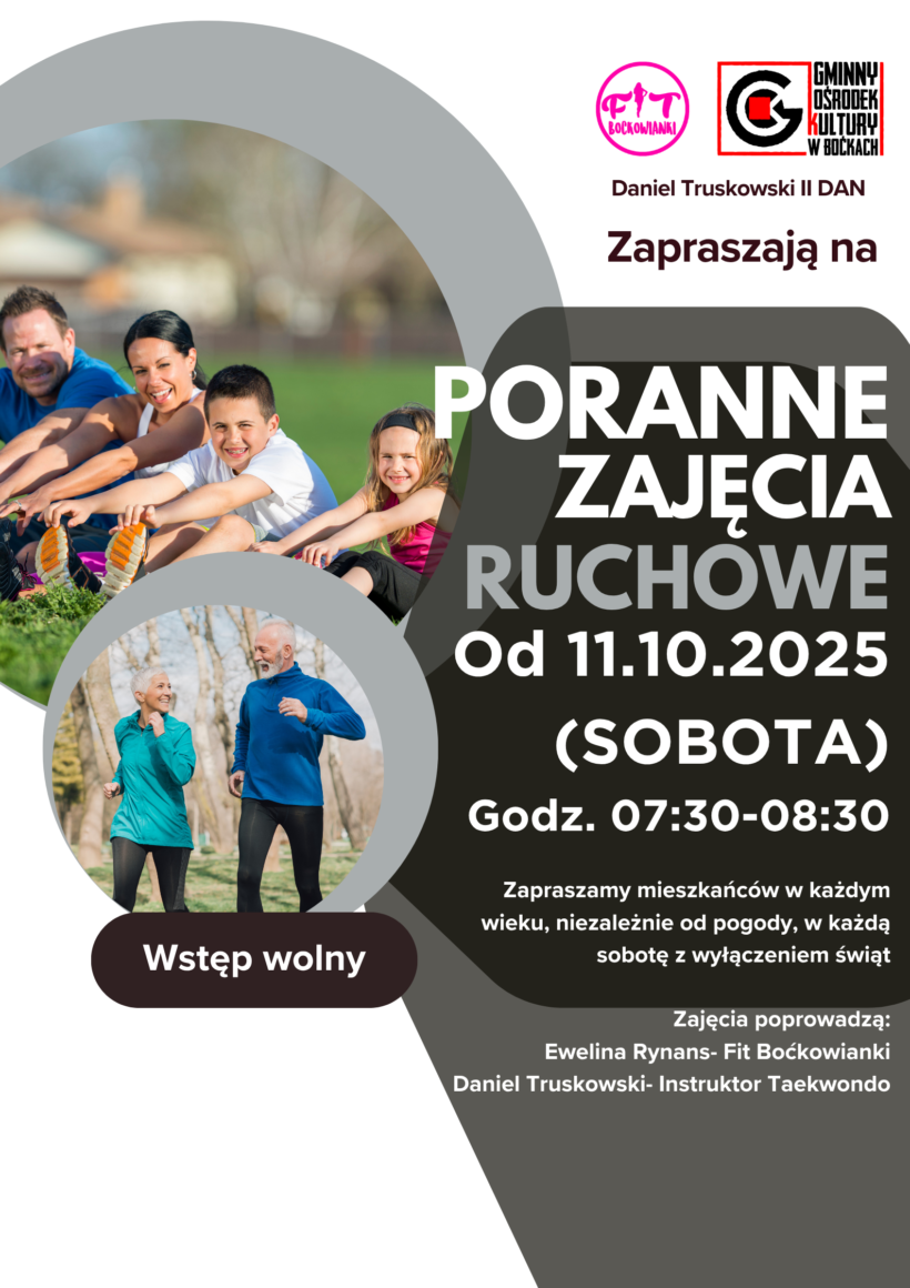 Już od 11 października 2025 r. w każdą sobotę zapraszamy wszystkich mieszkańców – bez względu na wiek i kondycję – na wspólne poranne zajęcia ruchowe. To doskonała okazja, aby rozpocząć weekend aktywnie, poprawić swoje samopoczucie i spędzić czas w miłej, energicznej atmosferze. 🕢 Godzina: 07:30–08:30📍 Miejsce: Boćki💰 Wstęp wolny Ćwiczymy niezależnie od pogody – spotykamy […]