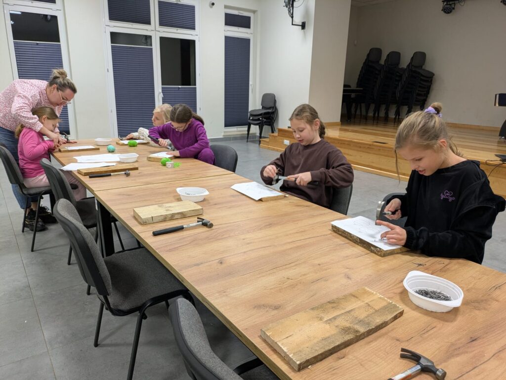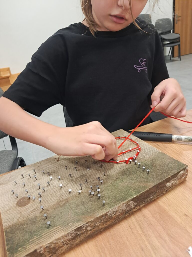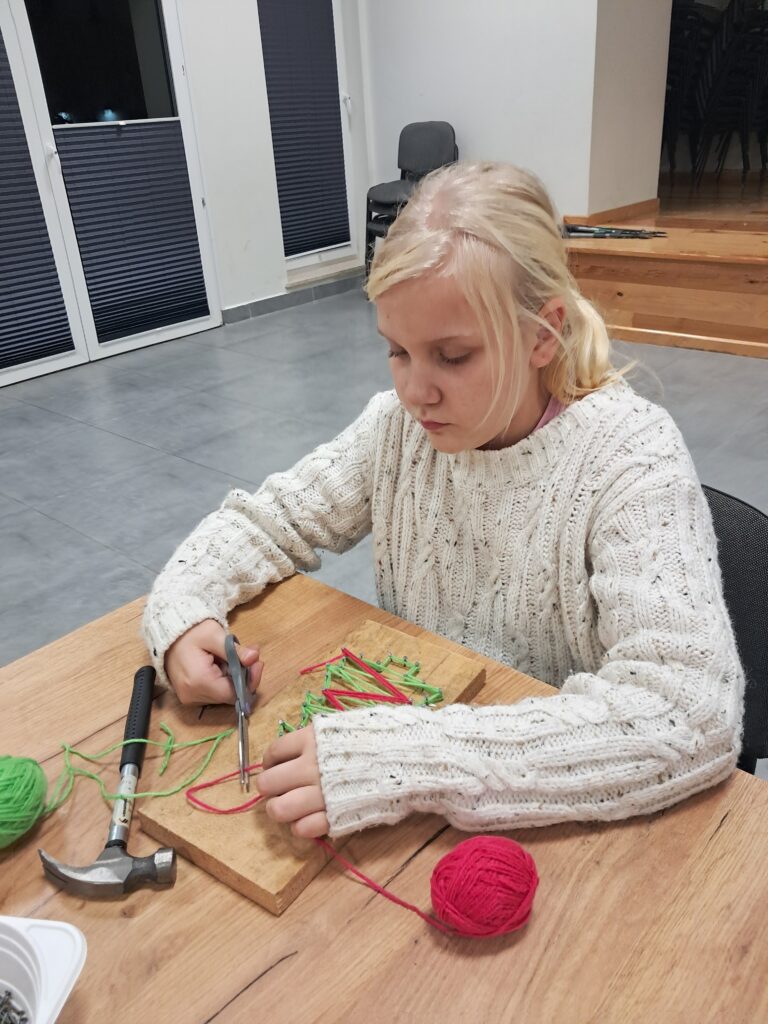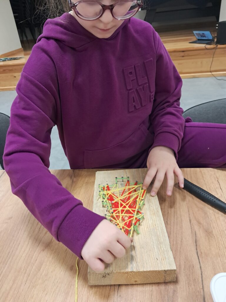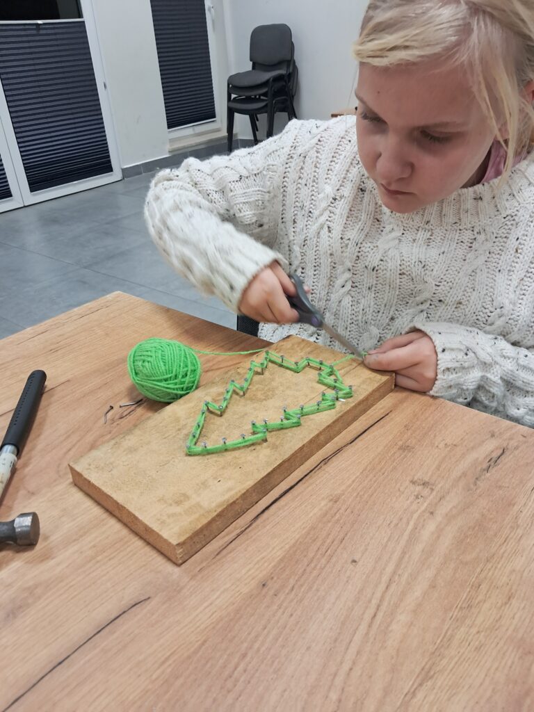 W świątecznej atmosferze odbyły się warsztaty String Art – Boże Narodzenie, podczas których dzieci miały okazję poznać niezwykle efektowną technikę tworzenia obrazów z wykorzystaniem gwoździków i kolorowych nici. Uczestnicy z zaangażowaniem, cierpliwością i kreatywnością wykonali piękne, świąteczne prace.
